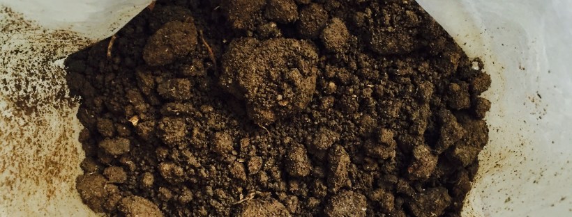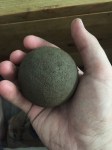 The first day is spent sifting, mixing dirt and water, and forming a palm-sized sphere. Using water and corse dirt I form a cake of mud and work with it until it’s able to hold itself together. I tend to err on the side of adding to little water and increasing slowly to get an even consistency. I passing the cake from palm to palm and start to form the sphere. Any large folds, pits, and flats are worked out and the ‘dango gets hung in a clean plastic shopping bag which will be it’s home for the next week to ten days. Hanging allows the ball to retain it’s shape and the bag keeps the dorodango surface moist as core begins to solidify. Day one ops usually take about two hours.