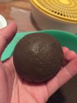 After a hectic last couple of weeks I’m happy to settle in and start a new dango. “Kingsbury” will be number six overall and the final of my California trilogy. Its soil was collected from a clay rich garden plot at my aunt and uncle’s home in the San Fernando Valley. I’m three days into the process now and so far its been a soft, spongy challenge. A dorodango is really sensitive during the early days and can only be worked for a short time before resting to dry. Here’s a quick (and dirty) run down of the first three days: